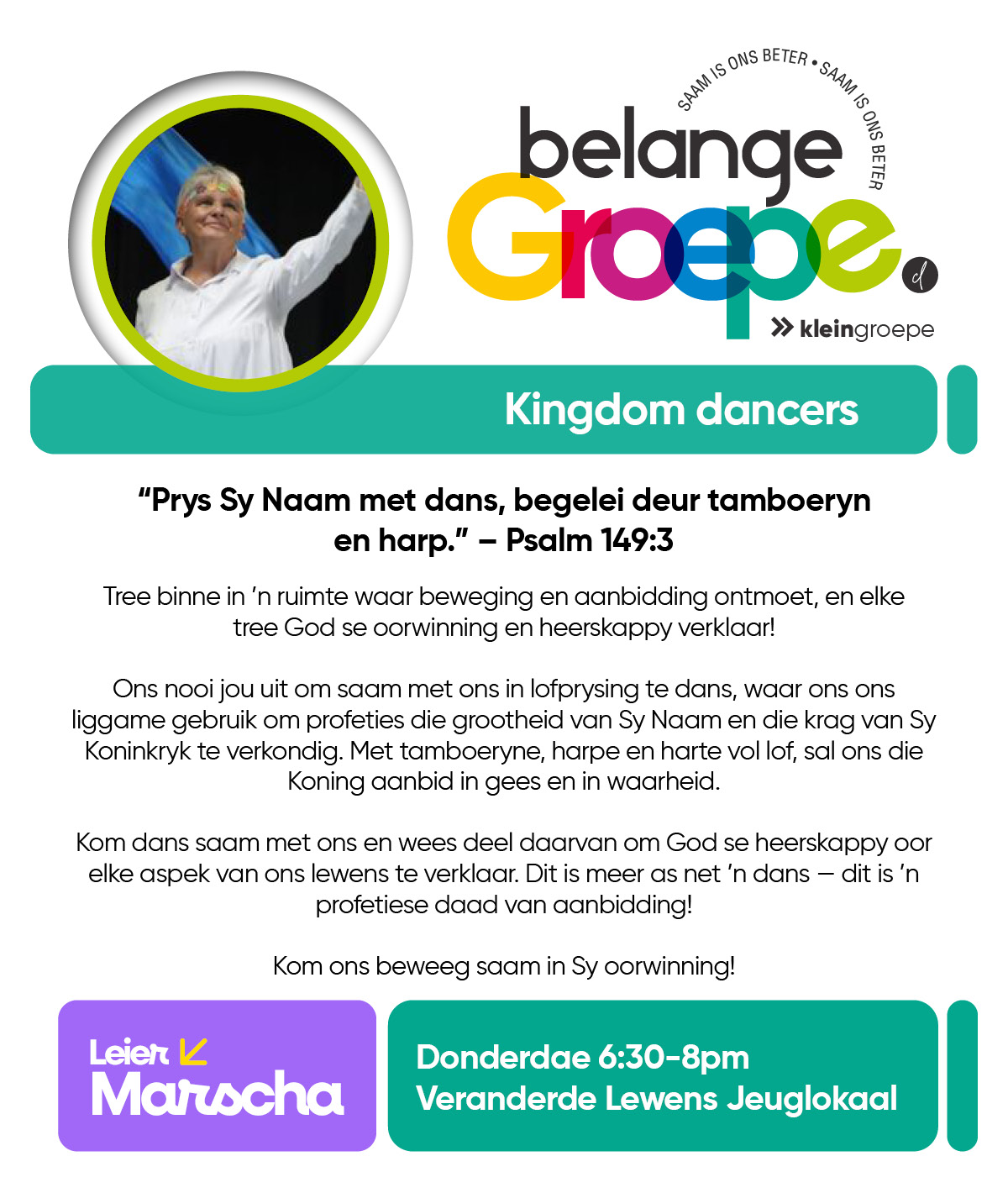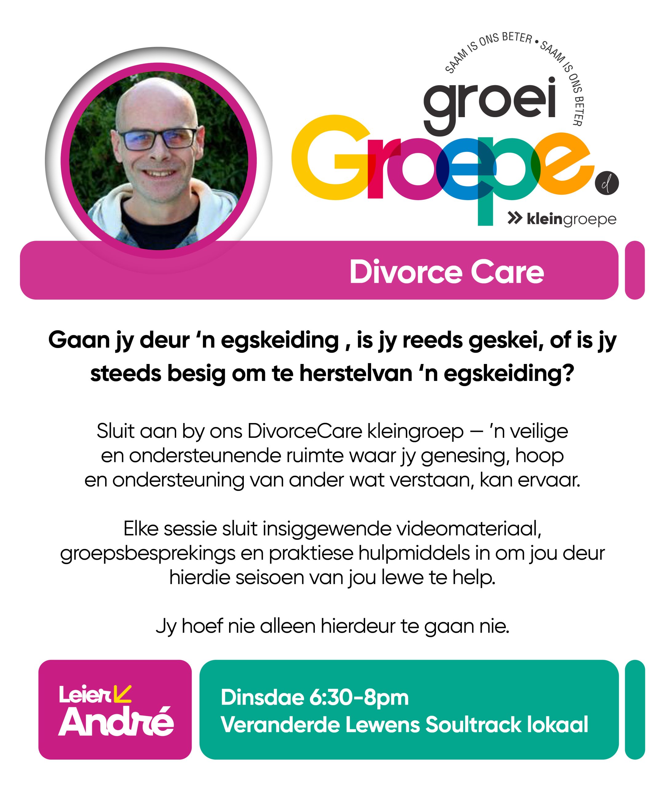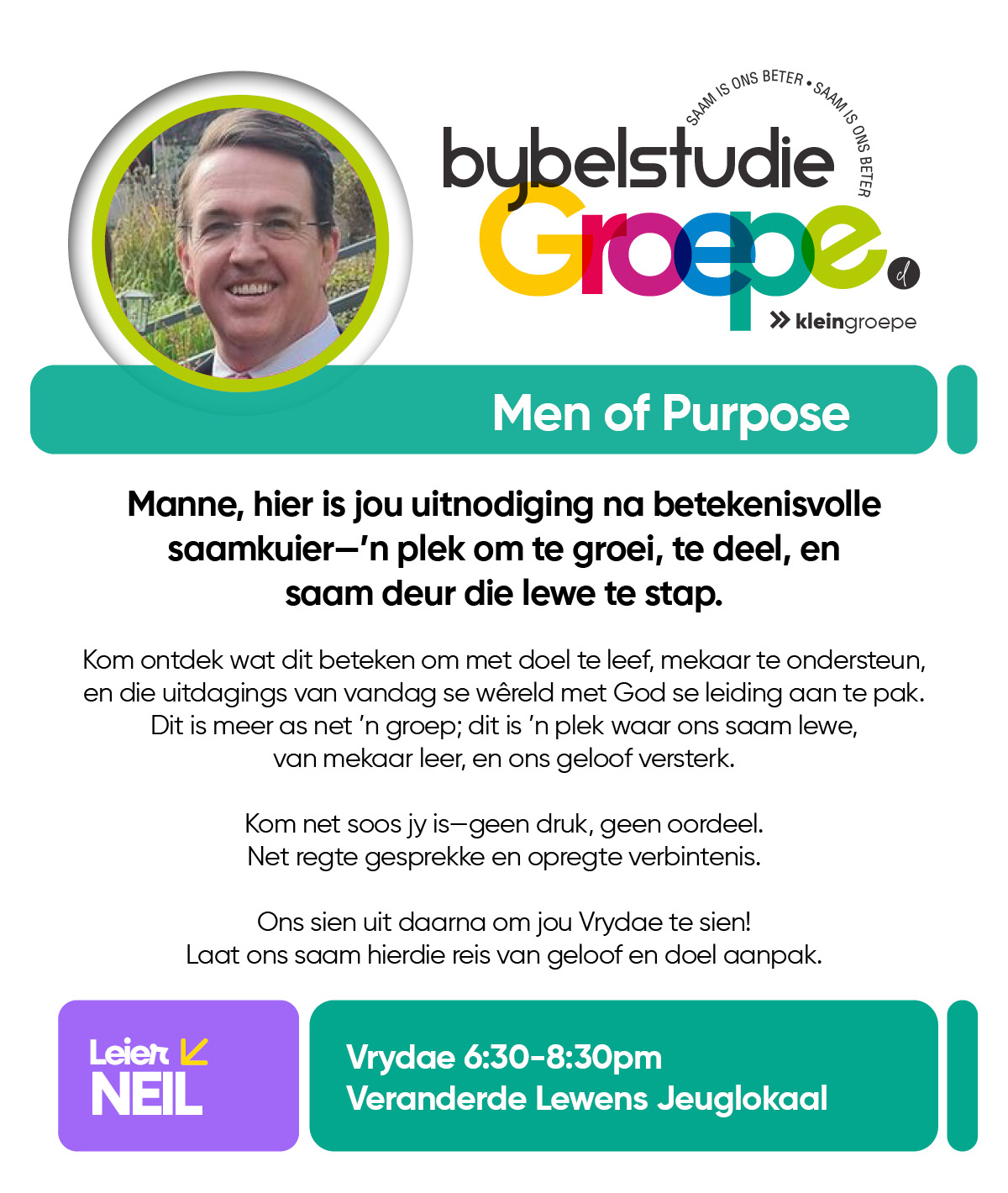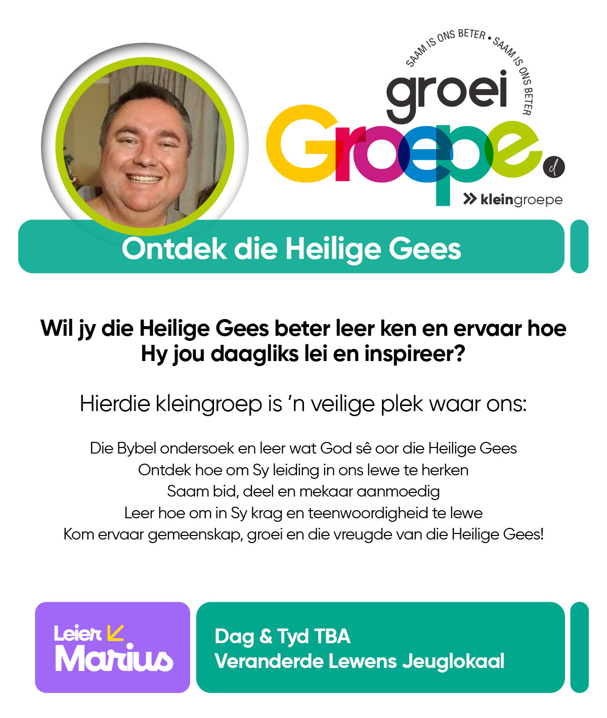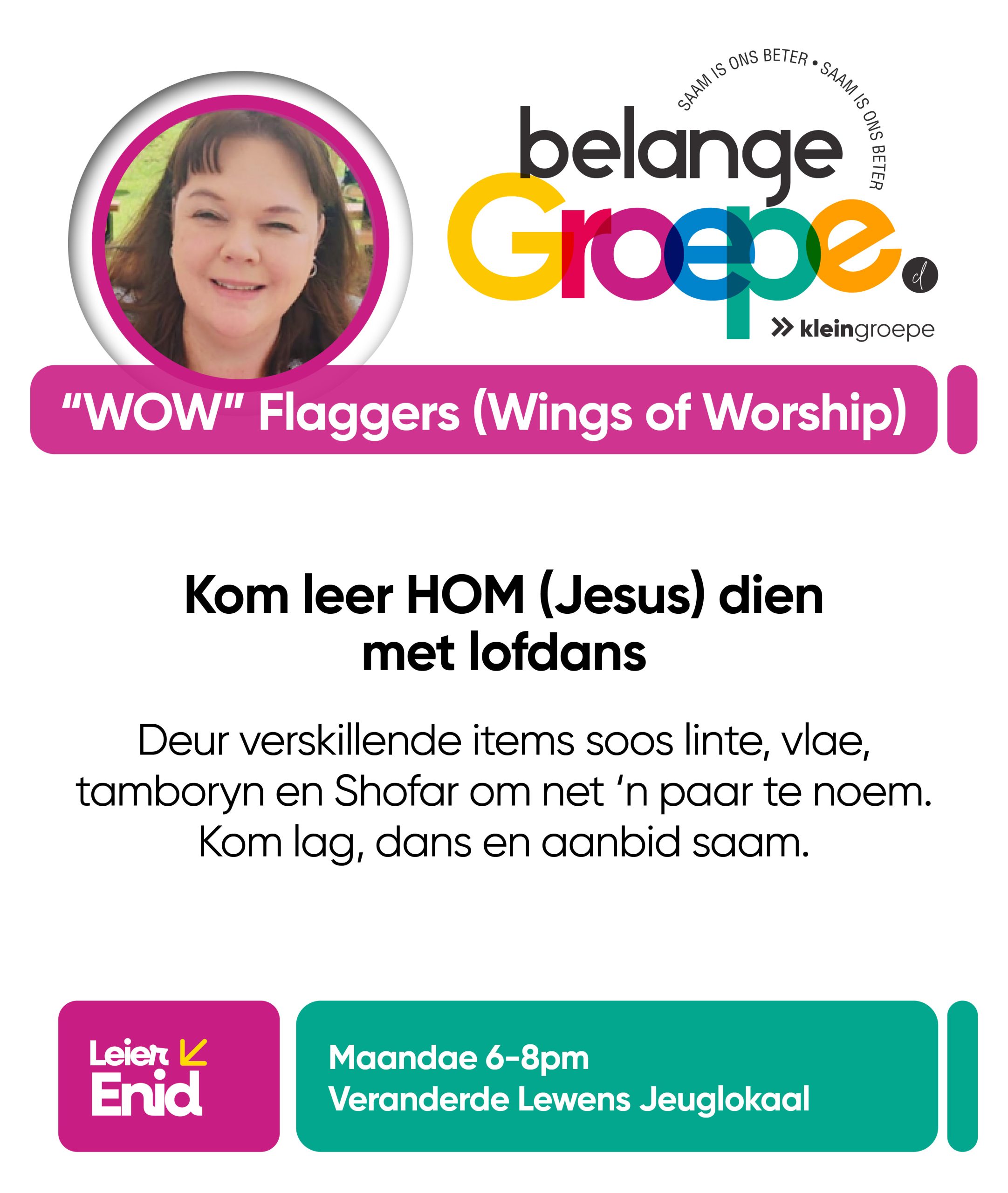As jy nog nie in ‘n Kleingroep is nie, hoekom sluit jy nie vandag by ‘n Kleingroep aan nie? Sien hieronder van ons Kleingroepe vir hierdie kwartaal, kontak gerus die kleingroepleier van die groep waarby jy graag wil aansluit.