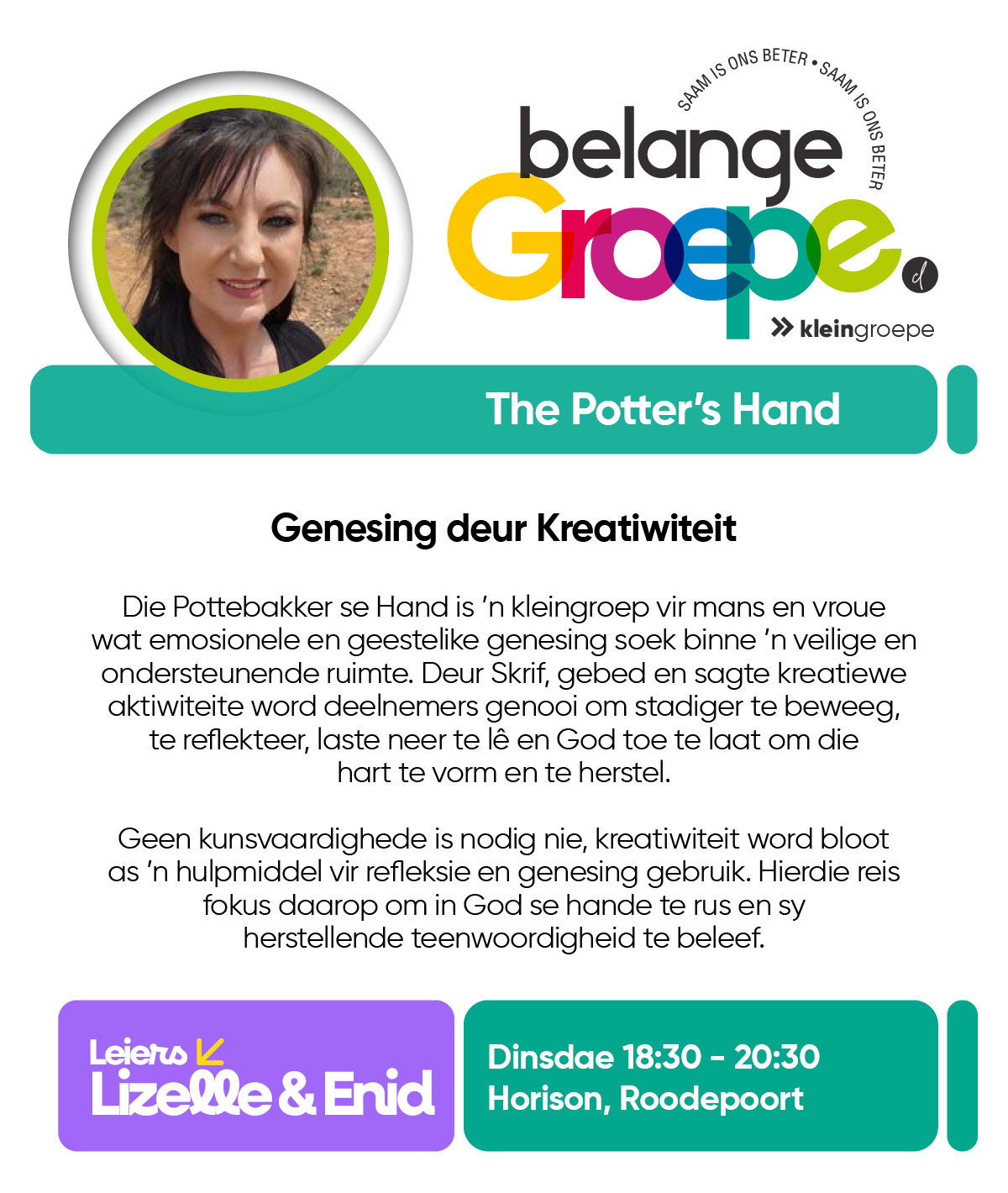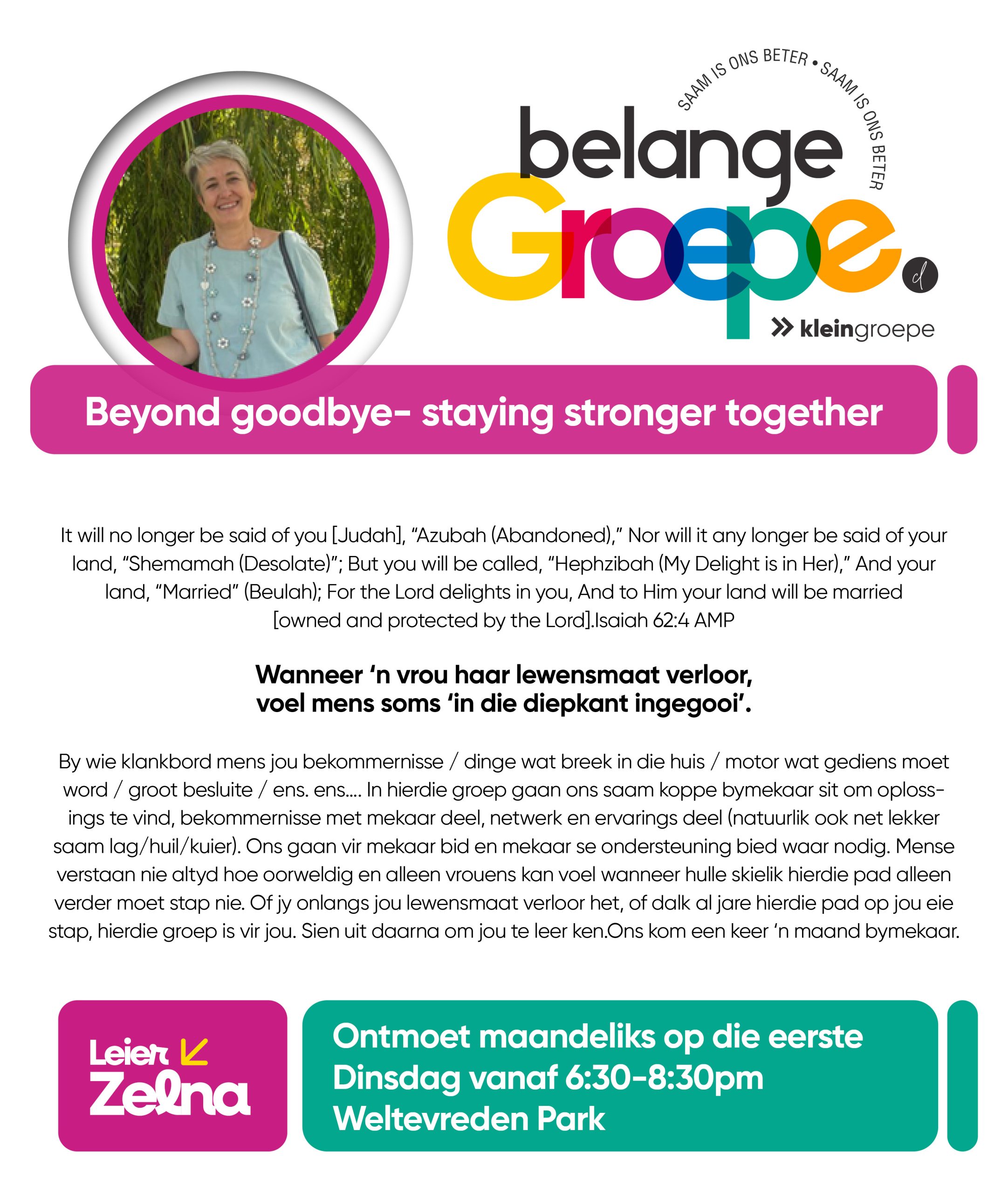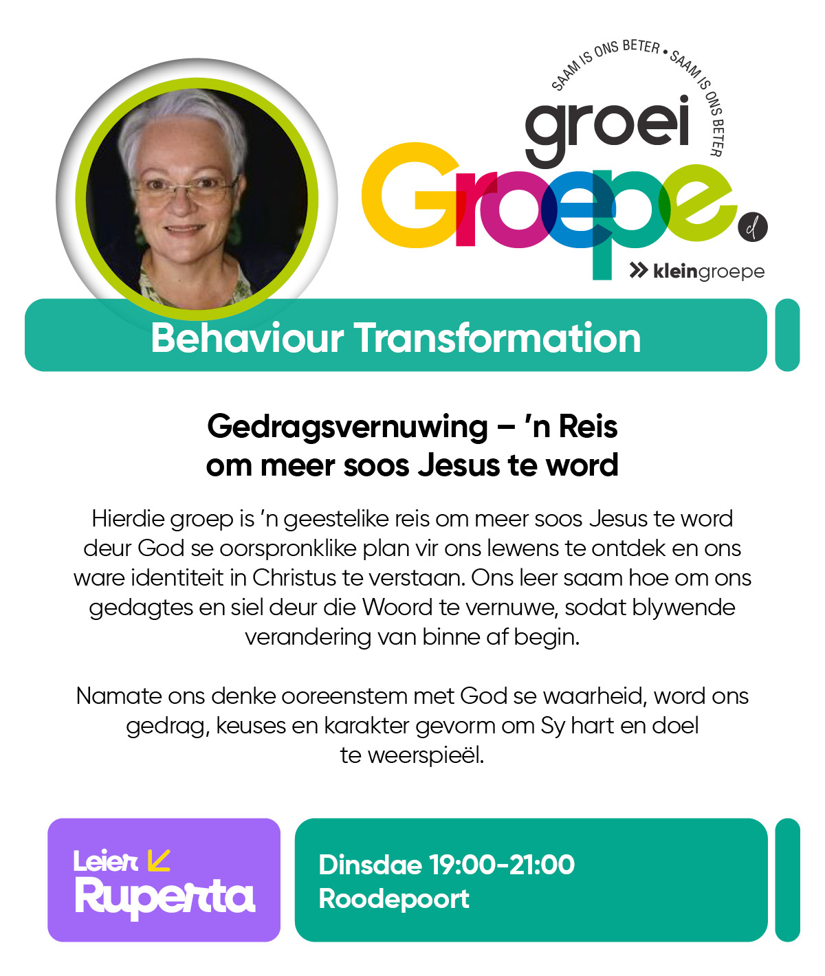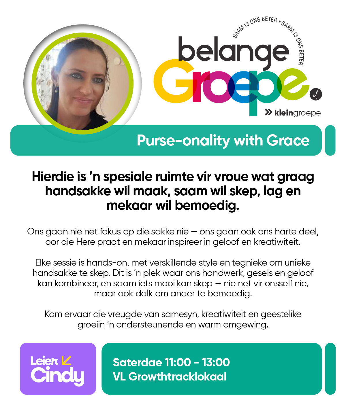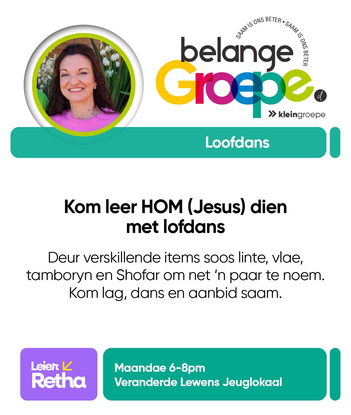 As jy nog nie in ‘n Kleingroep is nie, hoekom sluit jy nie vandag by ‘n Kleingroep aan nie? Sien hieronder van ons Kleingroepe vir hierdie kwartaal, kontak gerus die kleingroepleier van die groep waarby jy graag wil aansluit.