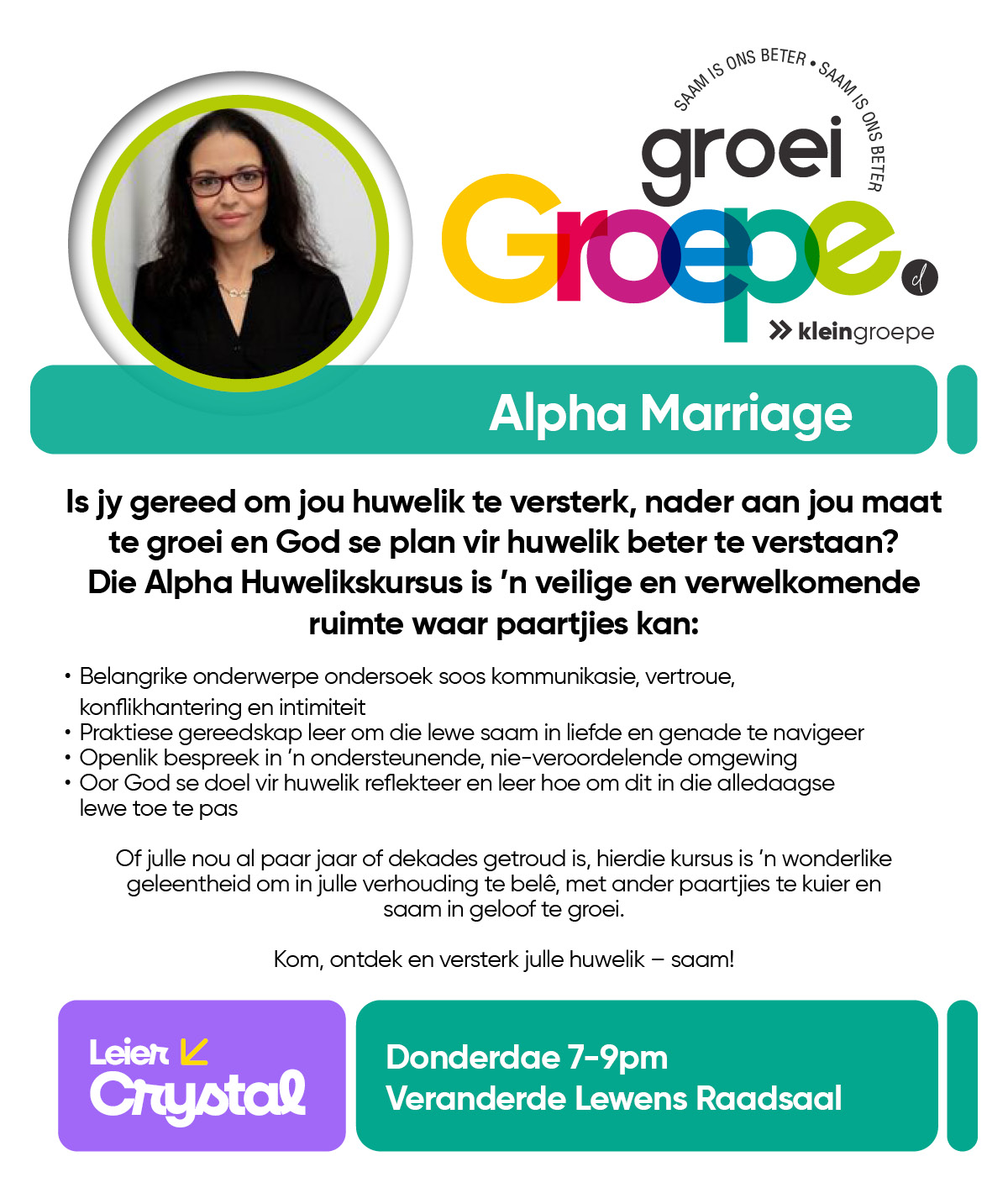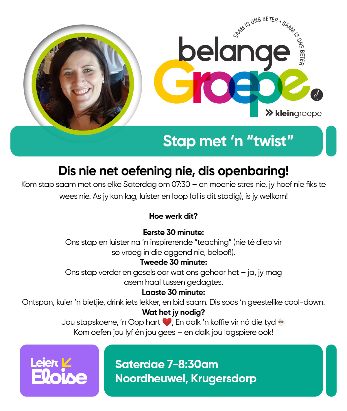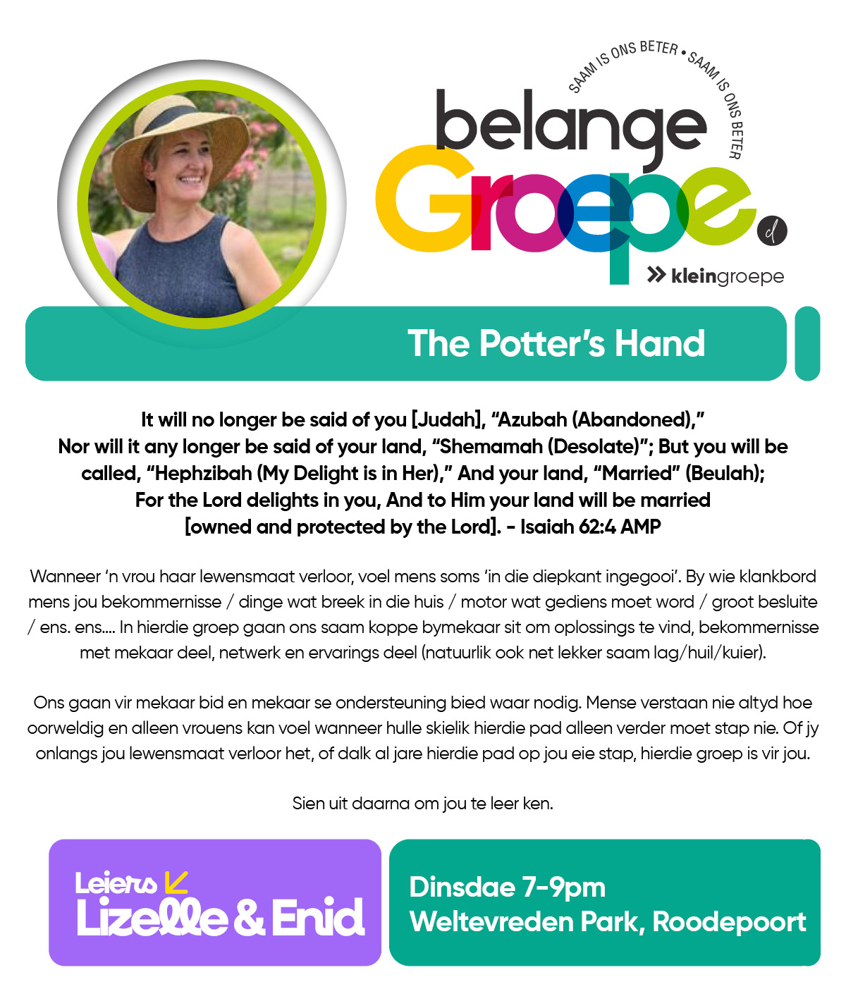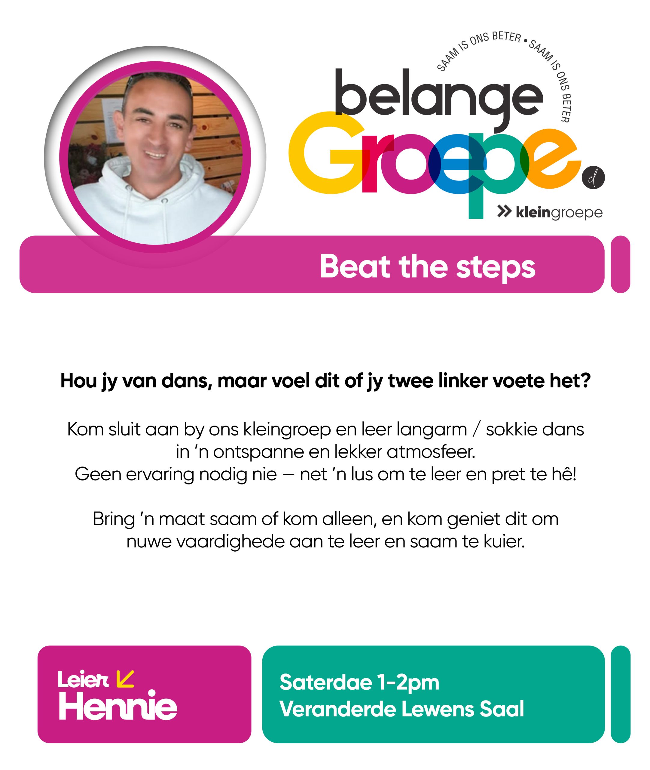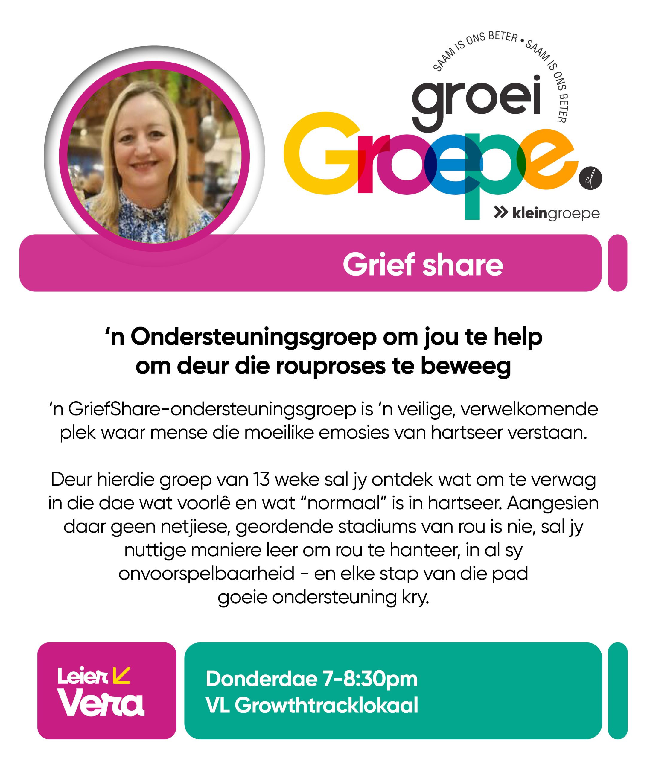 As jy nog nie in ‘n Kleingroep is nie, hoekom sluit jy nie vandag by ‘n Kleingroep aan nie? Sien hieronder van ons Kleingroepe vir hierdie kwartaal, kontak gerus die kleingroepleier van die groep waarby jy graag wil aansluit.